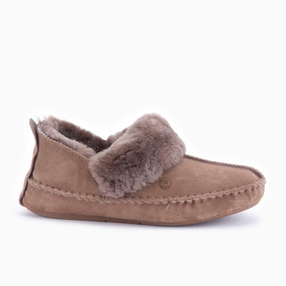 The outside of the slippers is finished with the luxurious material suede