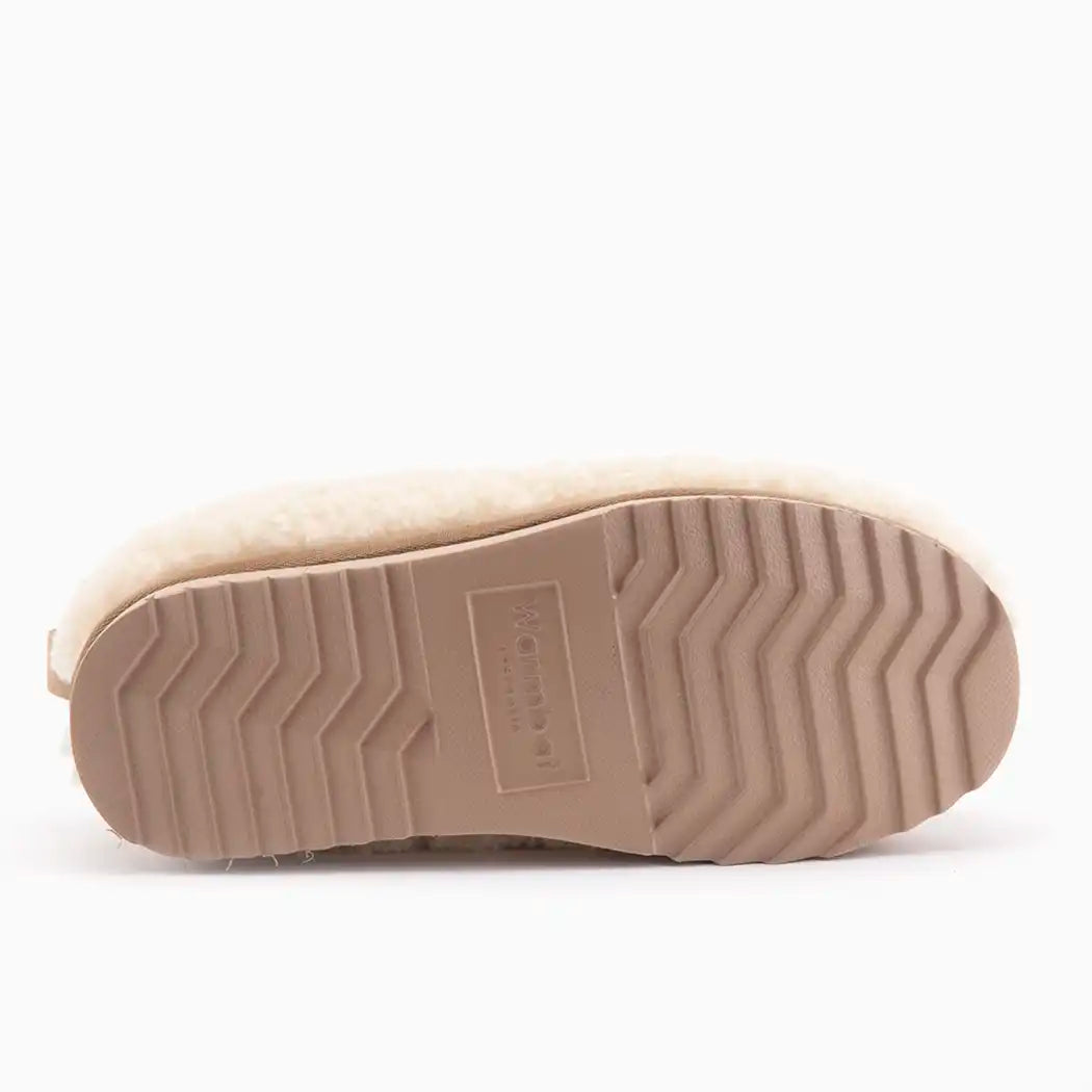Our popular Kynuna suede slipper is now also available with a curly Merino wool lining. This curly sheep's wool provides extra volume, warmth, and a playful look, while still guaranteeing the quality of 100% Australian Merino. Ideal for those looking for that little bit of extra comfort and style at home.